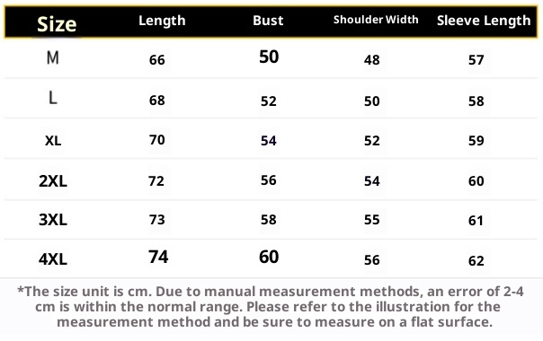 Note: 1. Asian sizes are 1 to 2 sizes smaller than European and American people. Choose the larger size if your size between two sizes. Please allow 2-3cm differences due to manual measurement. 2. Please check the size chart carefully before you buy the item, if you don’t know how to choose size, please contact our customer service. 3.As you know, the different computers display colors differently, the color of the actual item may vary slightly from the following images.